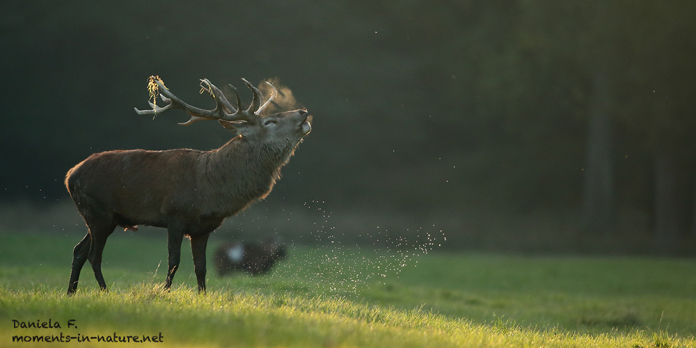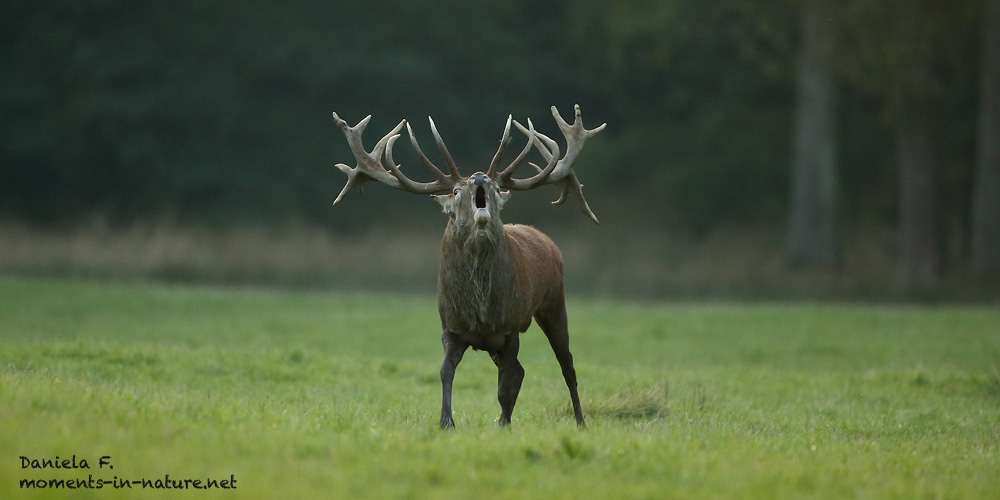 Der Hirsch hat sich leider -vermutlich nach dem Bast beim Fegen- eine Geweihstange abgeschlagen. Jetzt muss er für den Rest der Saison mit „weniger Geweih“ auskommen. Das macht ihn natürlich unverwechselbar 🙂 Seinen Damen macht das aber bestimmt nichts aus …